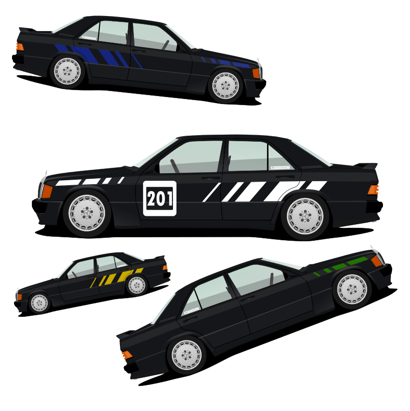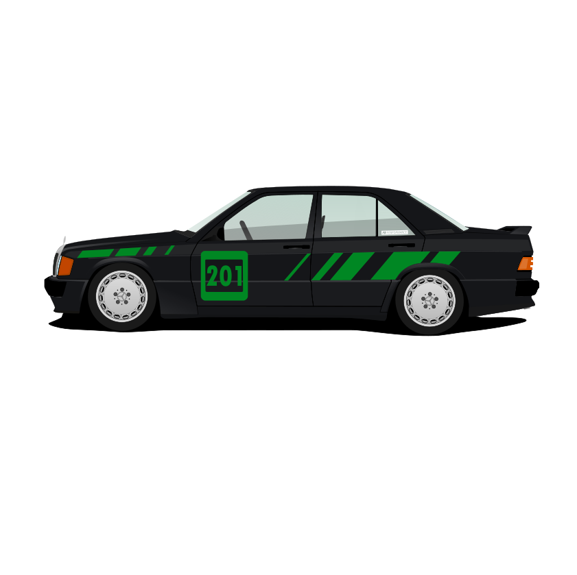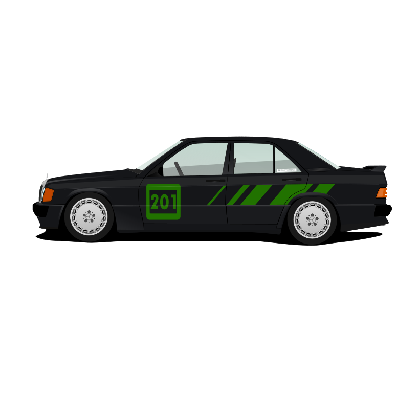 Verleihe Deinem Mercedes W201 den ikonischen Look des klassischen Rennsports mit dem TrackMaster-Kit. Dieses hochwertige Aufkleber-Set ist speziell für alle Mercedes W201-Modelle (außer Evolution) entworfen und bietet eine sportliche, dynamische Optik, die an legendäre Rennwagen erinnert.
